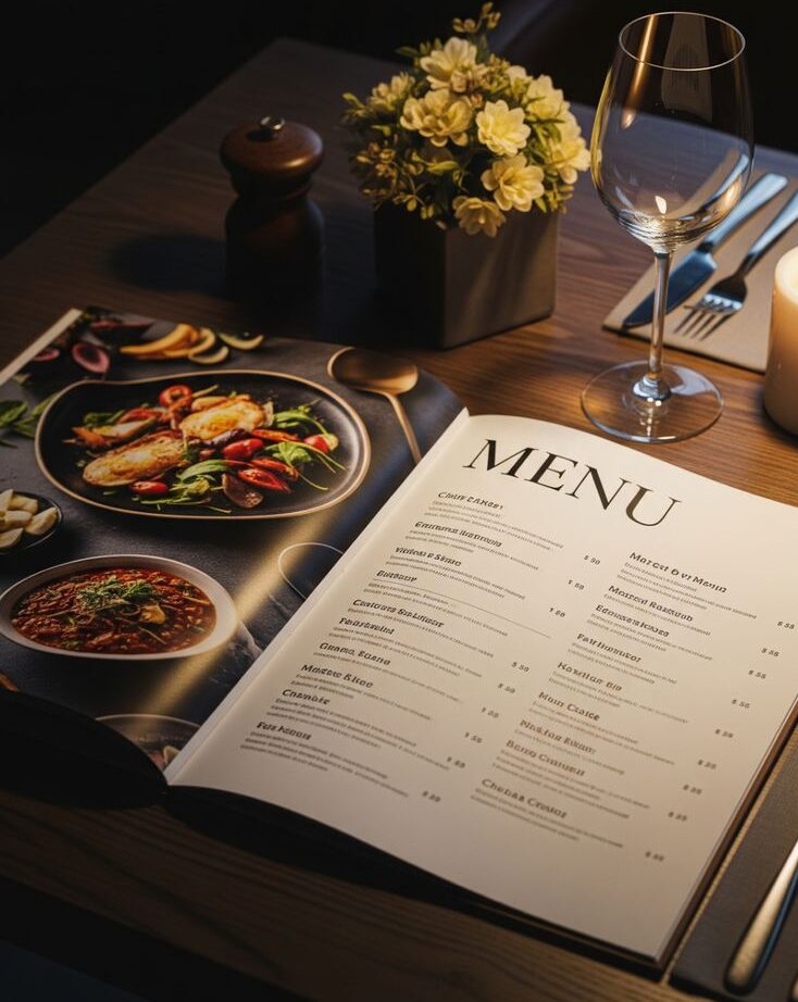 The menu is the most important sales tool in the hospitality industry. Our Hospitality Menu Design Portfolio is dedicated to creating menus that are both aesthetically pleasing and strategically engineered for profit. We apply principles of menu engineering to guide the customer’s eye towards high-margin items, while ensuring the design perfectly complements the restaurant’s brand identity and ambiance.